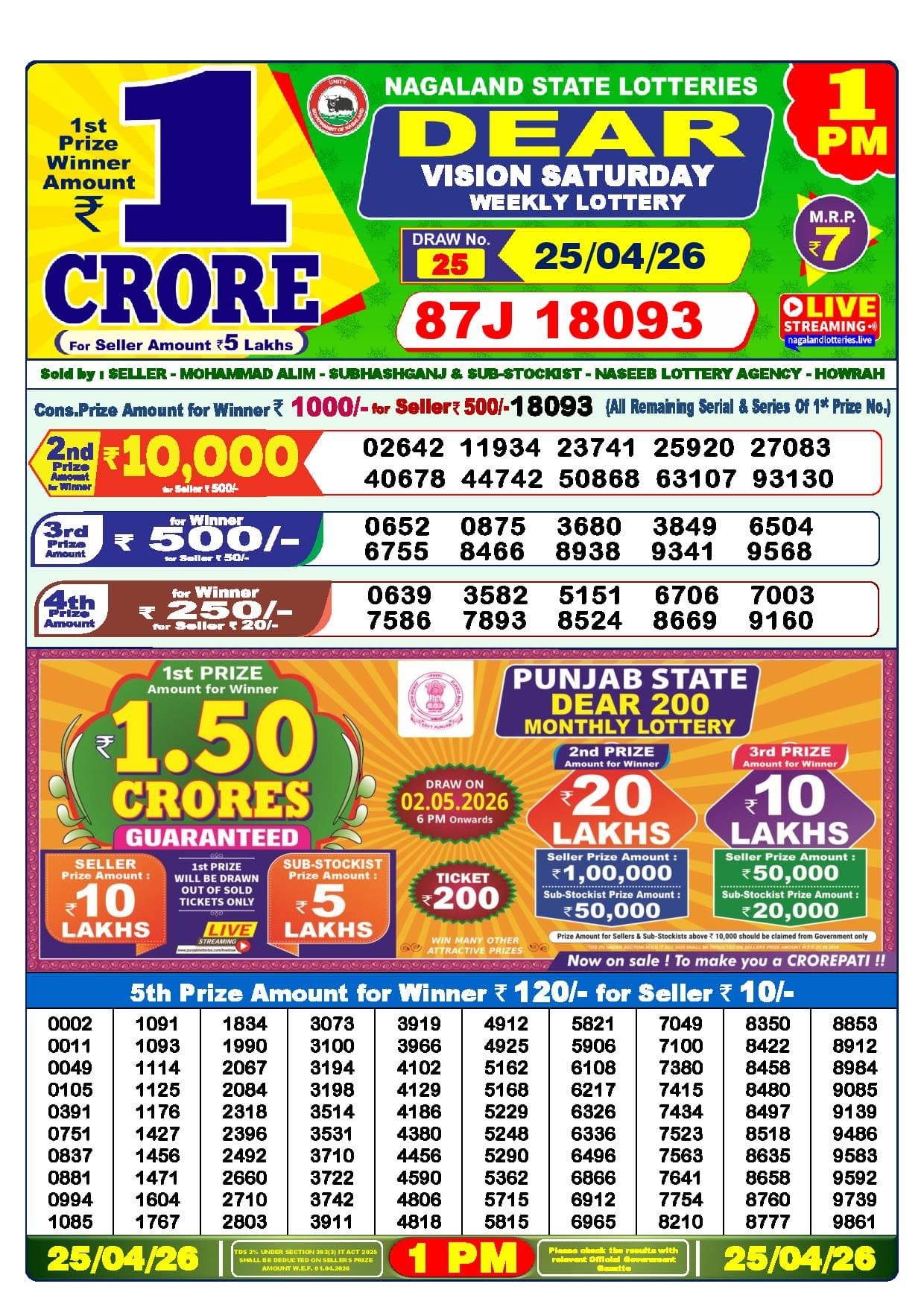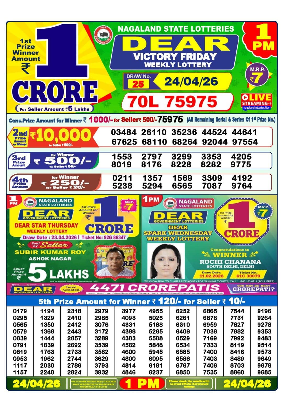 Nagaland State Lottery 25 Tarik Result