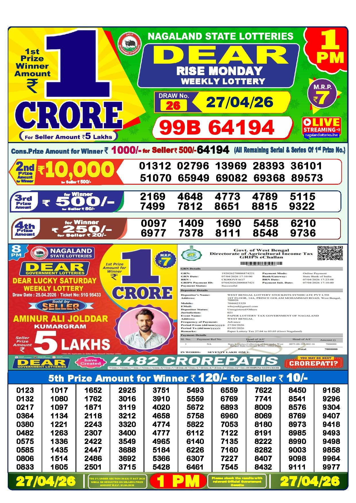Nagaland State Lottery 7 Tarik Result