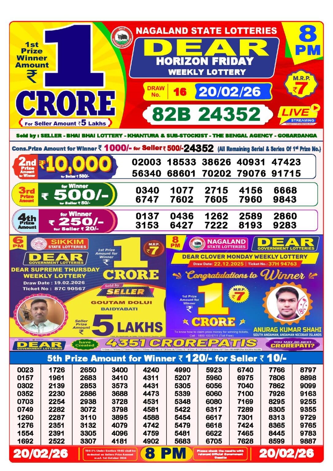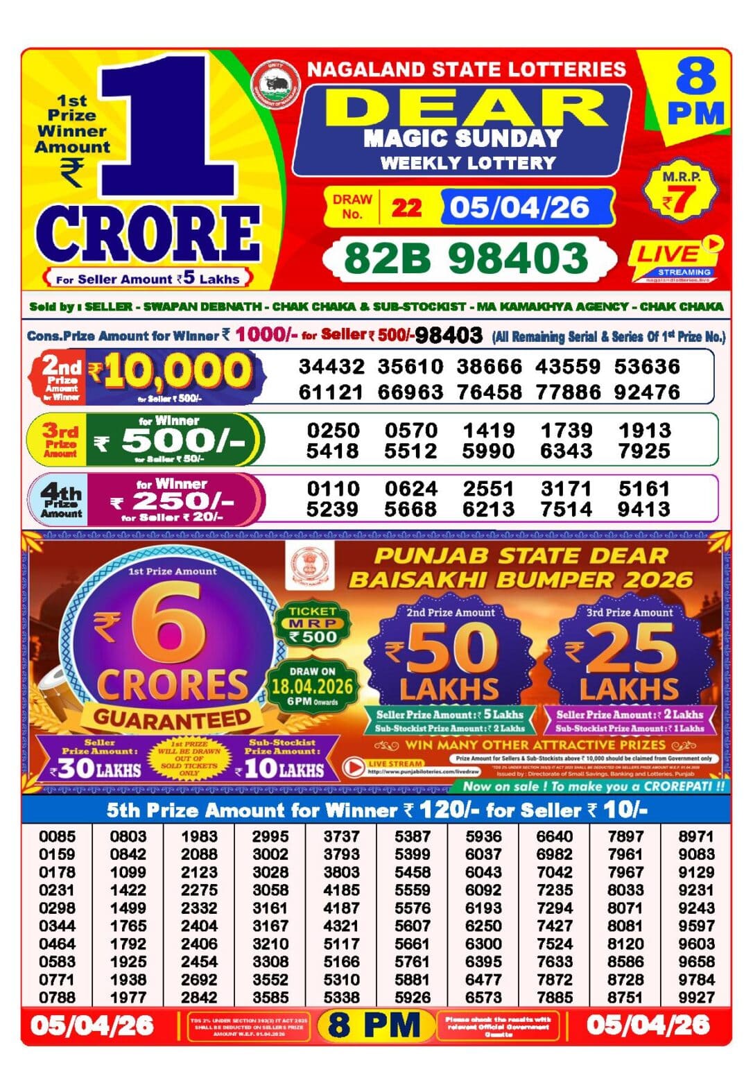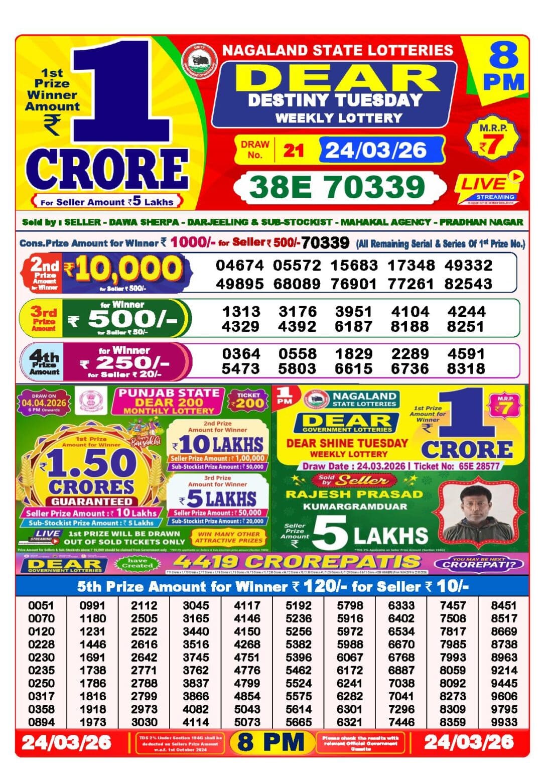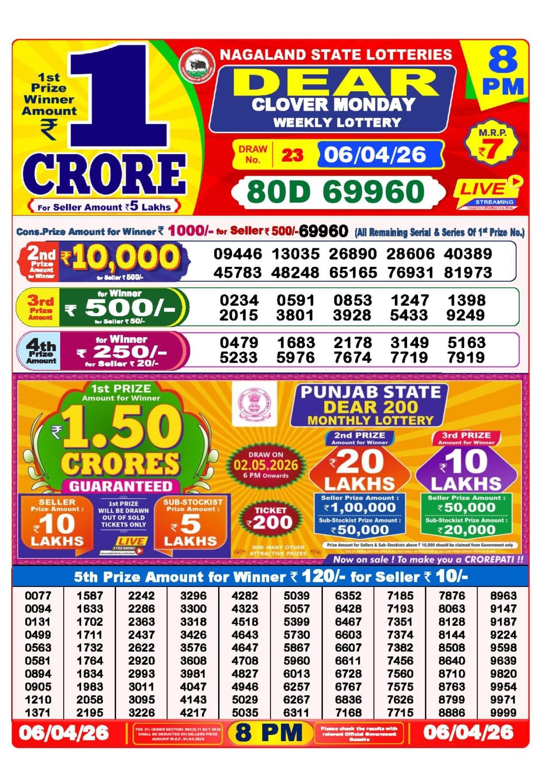 - Nagaland State Lottery Result Today 8pm live