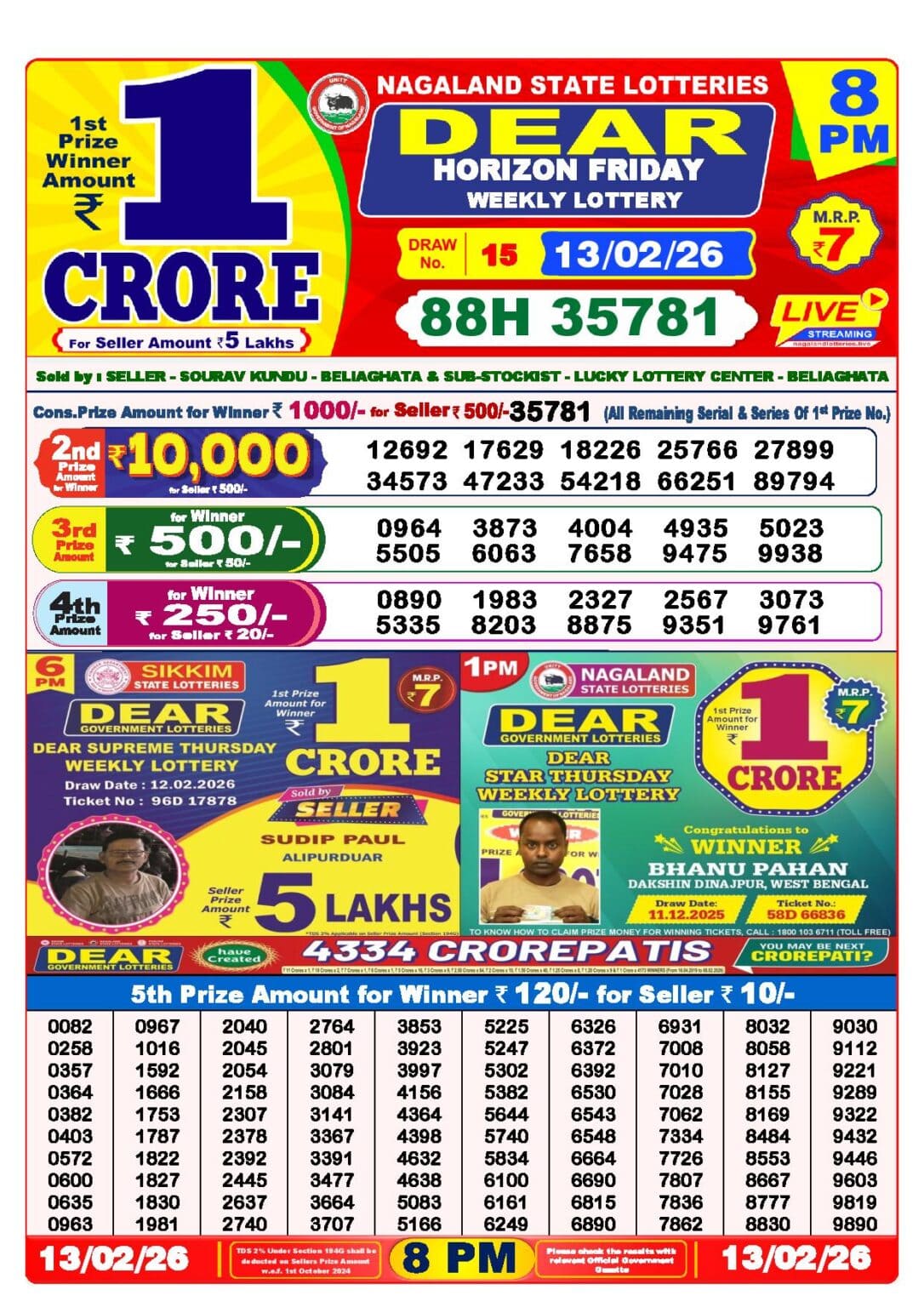 Dear Lottery Result Today 1PM Draw Schedule & Names