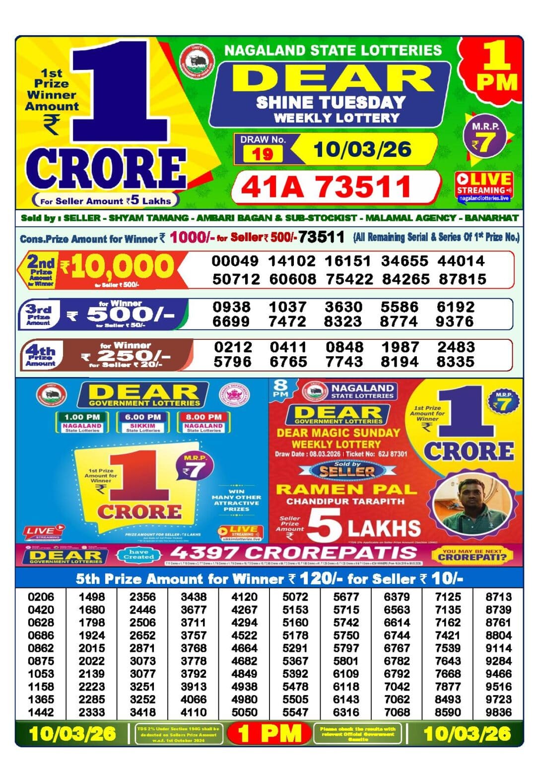 26 Tarik Lottery Result 1 PM 6 PM 8 PM