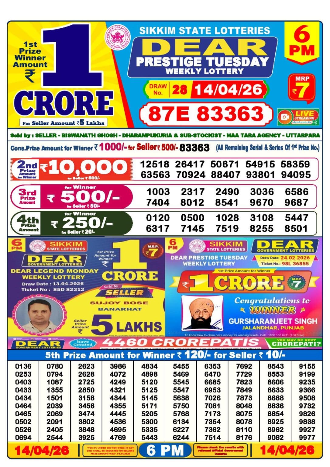 Do you want to see the result of 14 Tarikh Lottery Sambad 1 PM, 6 PM & 8 PM Nagaland State Result? Then you have come to the right place. We publish all results of Nagaland State Lottery, Lottery Sambad Morning Draw List, Lottery Sambad Night Draw List, Lottery Sambad Evening Draw List, and Lottery Result Sambad on this website every day at the right time. This 14 Tarikh Lottery Sambad has a 1st prize of 1 crore, 2nd Prize of 9000 Rupees, 3rd Prize of 450 Rupees, 4th Prize of 250 Rupees and 5th Prize of 120 Rupees. Nagaland State Lottery department released today 14 Tarikh Lottery Sambad result. Today’s all result is given below.