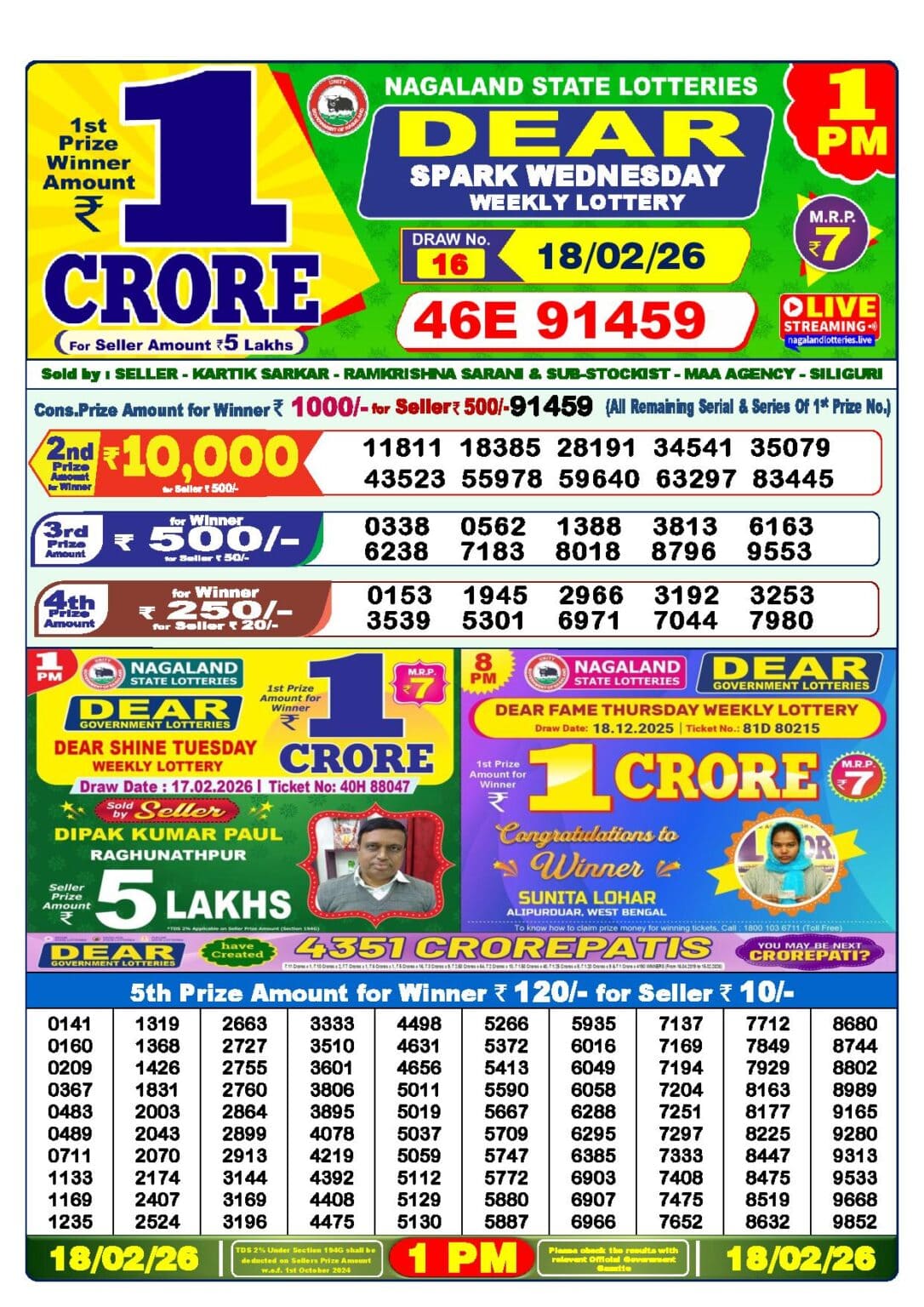 Do you want to see the result of 18 Tarik morning lottery sambad? Then you have come to the right place. We publish all results of Nagaland State Lottery, Lottery Sambad Morning Draw List, Lottery Sambad Night Draw List, Lottery Sambad Evening Draw List, Sambad Lottery Result, and Lottery Result Sambad on this website every day at the right time. This 18 tarik morning lottery sambad has a 1st prize of 1 crore, 2nd Prize of 9000 Rupees, 3rd Prize of 450 Rupees, 4th Prize of 250 Rupees and 5th Prize of 120 Rupees. Nagaland State Lottery department released 18 Tarik morning lottery sambad Result. Today’s result is given below.