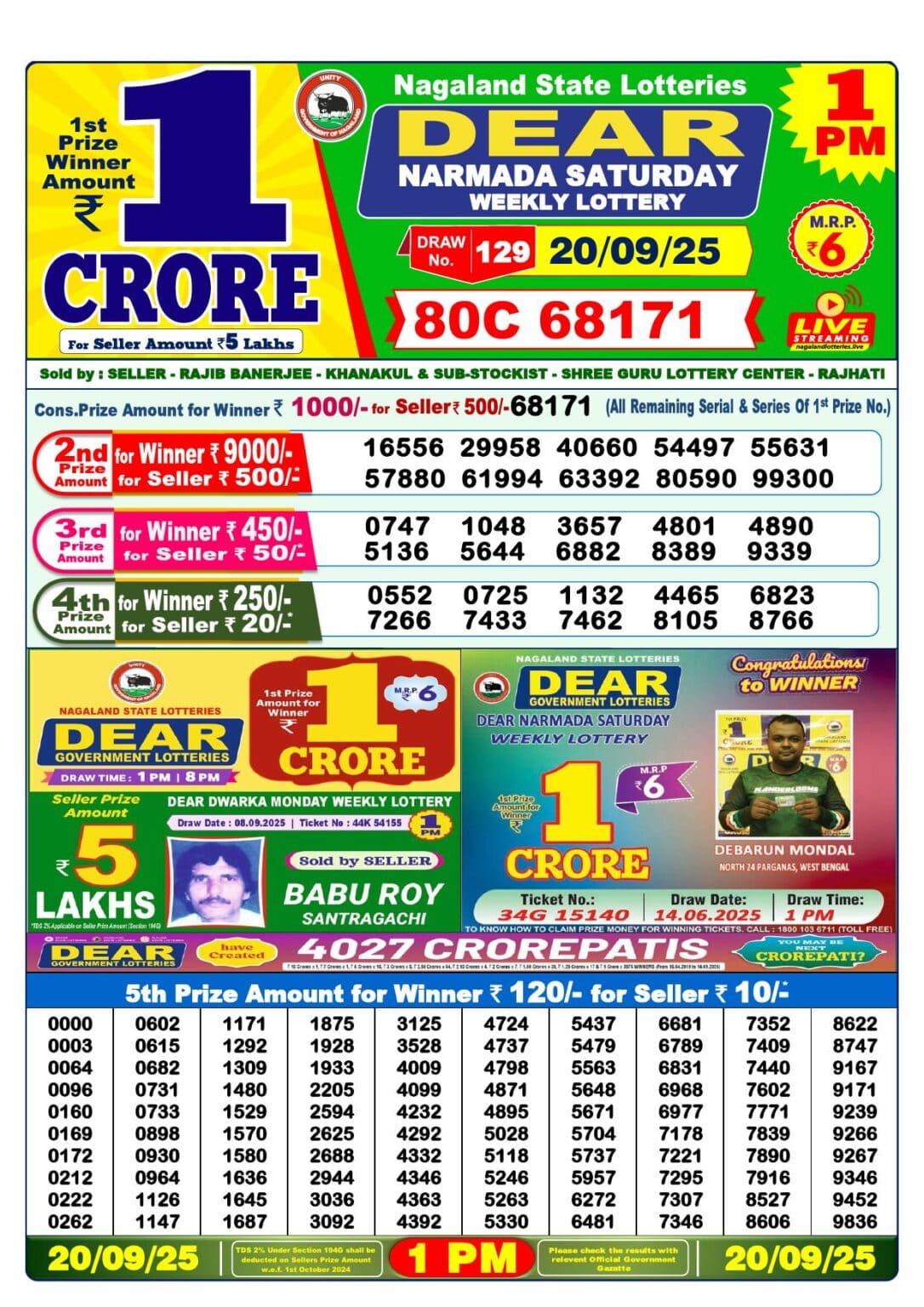 Do you want to see the result of 20 Tarikh Lottery Sambad 1 PM, 6 PM & 8 PM Nagaland State Result? Then you have come to the right place. We publish all results of Nagaland State Lottery, Lottery Sambad Morning Draw List, Lottery Sambad Night Draw List, Lottery Sambad Evening Draw List, and Lottery Result Sambad on this website every day at the right time. This 20 Tarikh Lottery Sambad has a 1st prize of 1 crore, 2nd Prize of 9000 Rupees, 3rd Prize of 450 Rupees, 4th Prize of 250 Rupees and 5th Prize of 120 Rupees. Nagaland State Lottery department released today 20 Tarikh Lottery Sambad result. Today’s all result is given below.
