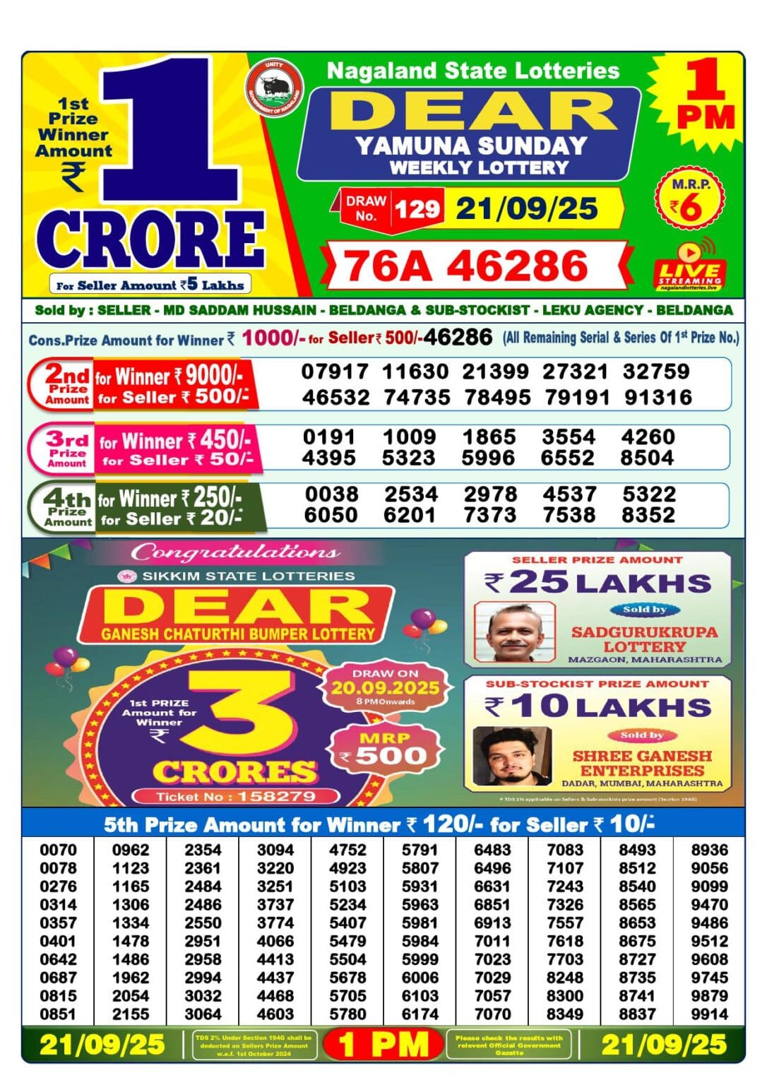 Do you want to see the result of 21 Tarikh Lottery Sambad 1 PM, 6 PM & 8 PM Nagaland State Result? Then you have come to the right place. We publish all results of Nagaland State Lottery, Lottery Sambad Morning Draw List, Lottery Sambad Night Draw List, Lottery Sambad Evening Draw List, and Lottery Result Sambad on this website every day at the right time. This 21 Tarikh Lottery Sambad has a 1st prize of 1 crore, 2nd Prize of 9000 Rupees, 3rd Prize of 450 Rupees, 4th Prize of 250 Rupees and 5th Prize of 120 Rupees. Nagaland State Lottery department released today 21 Tarikh Lottery Sambad result. Today’s all result is given below.