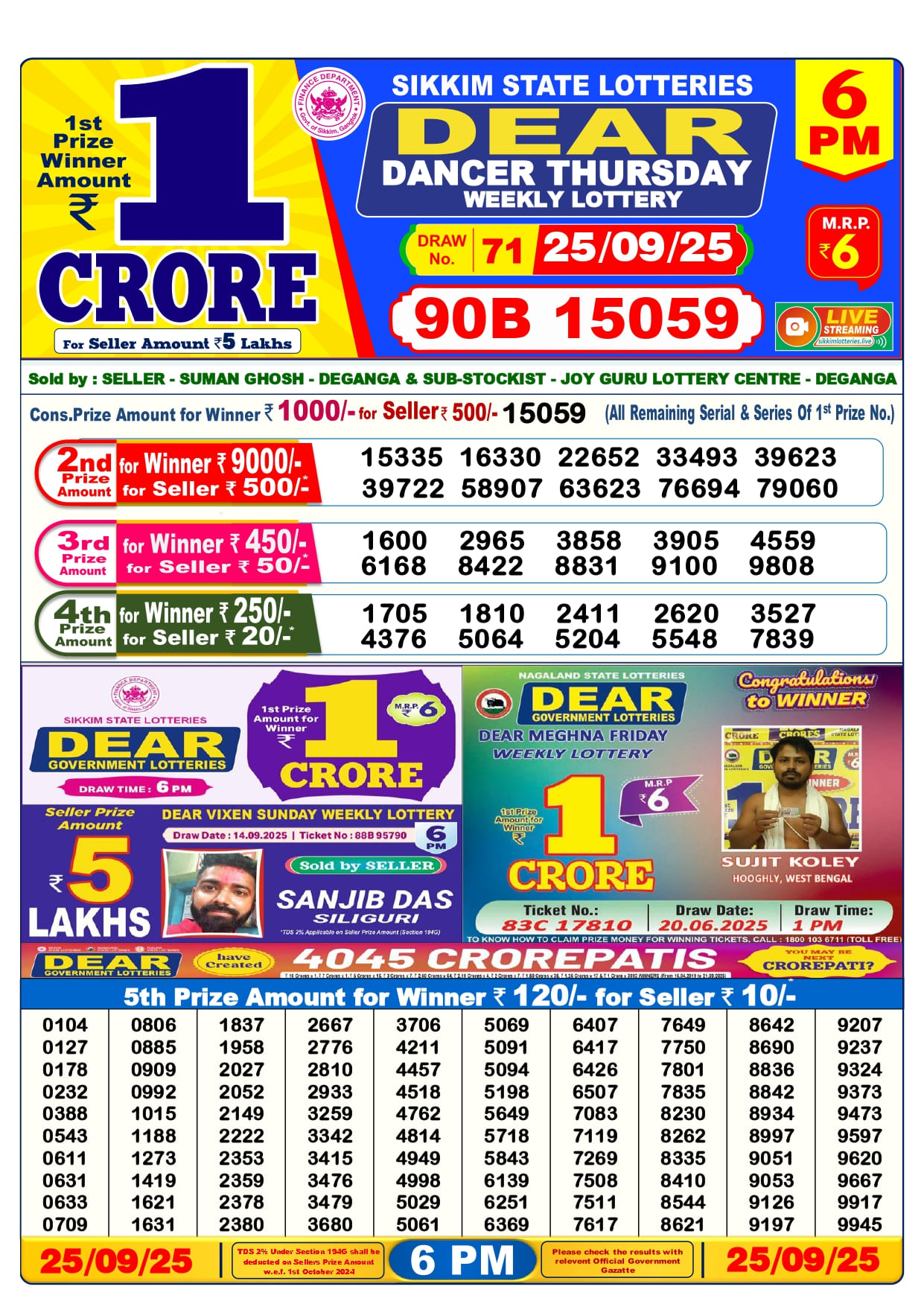 25 Tarikh Lottery Sambad 6 PM Evening Result
