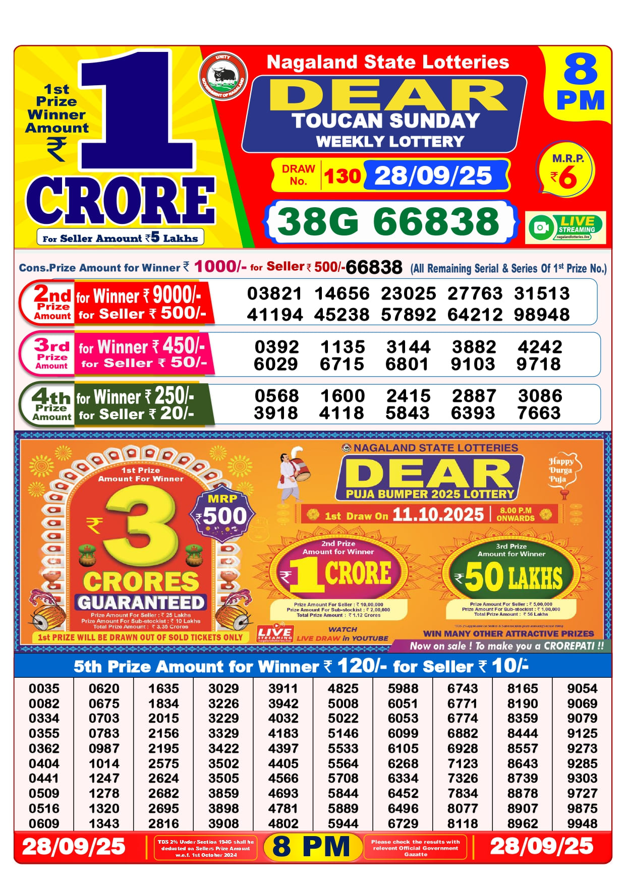 The Nagaland State Lottery Department has released today’s 28 Tarikh Lottery Sambad 6 pm Evening results. Check your today’s fortune result. Today 28 Tarikh Lottery Sambad 6 PM 1st Prize is – 85A 11485, 2nd Prize– 16077 49357 57550 57957 65767 74592 82755 85760 94113 95168, 3rd Prize– 0984 1271 1617 1791 2413 3203 6986 7762 9010 9902, 4th Prize– 1108 4714 5947 6403 8067 8333 8678 9050 9147 9887 and more results are given below.