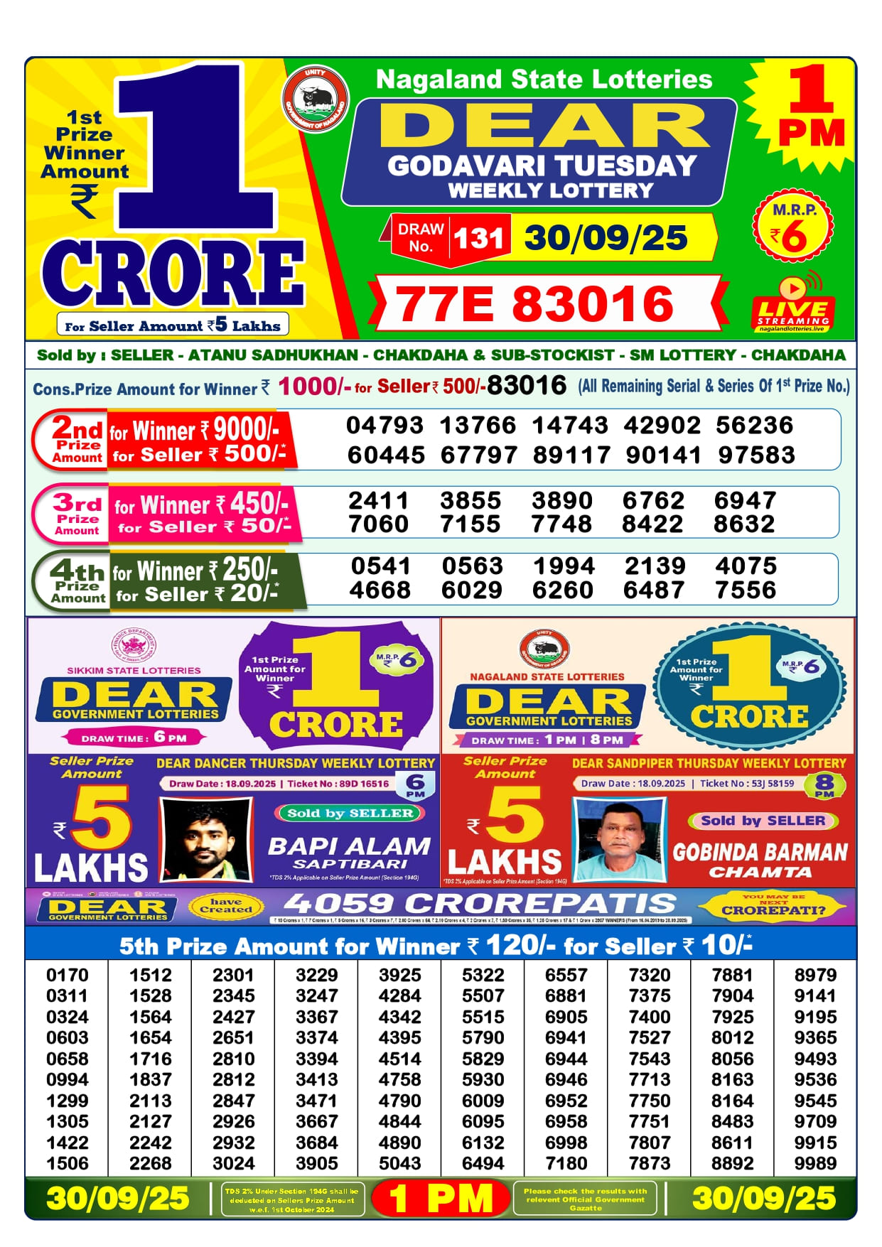 30 Tarikh Lottery Sambad Result আরো অন্যান্য নামগুলি হল