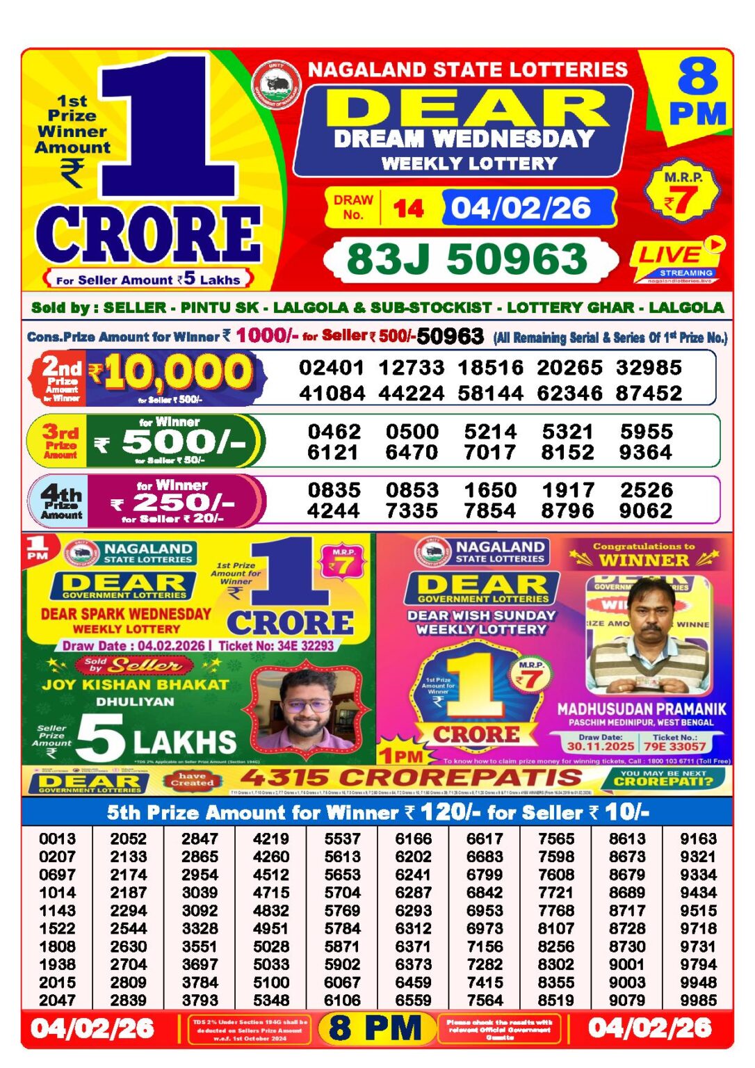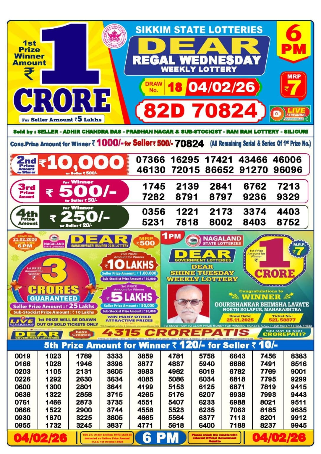 Do you want to see the result of 4 Tarik Lottery Sambad 1 PM, 6 PM and 8 PM? Then you have come to the right place. We publish all results of Nagaland State Lottery, Lottery Sambad Morning Draw List, Lottery Sambad Night Draw List, Lottery Sambad Evening Draw List, Sambad Lottery Result, and Lottery Result Sambad on this website every day at the right time. This 4 Tarik Lottery Sambad has a 1st prize of 1 crore, 2nd Prize of 9000 Rupees, 3rd Prize of 450 Rupees, 4th Prize of 250 Rupees and 5th Prize of 120 Rupees. Nagaland State Lottery department released today 4 Tarik Lottery Sambad results. Today’s result is given below.