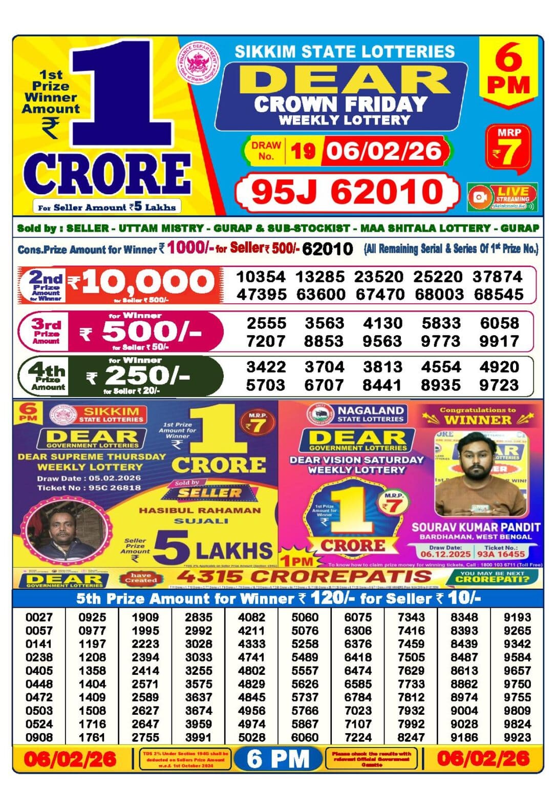 6 Tarik Lottery Result 1 PM 6 PM 8 PM