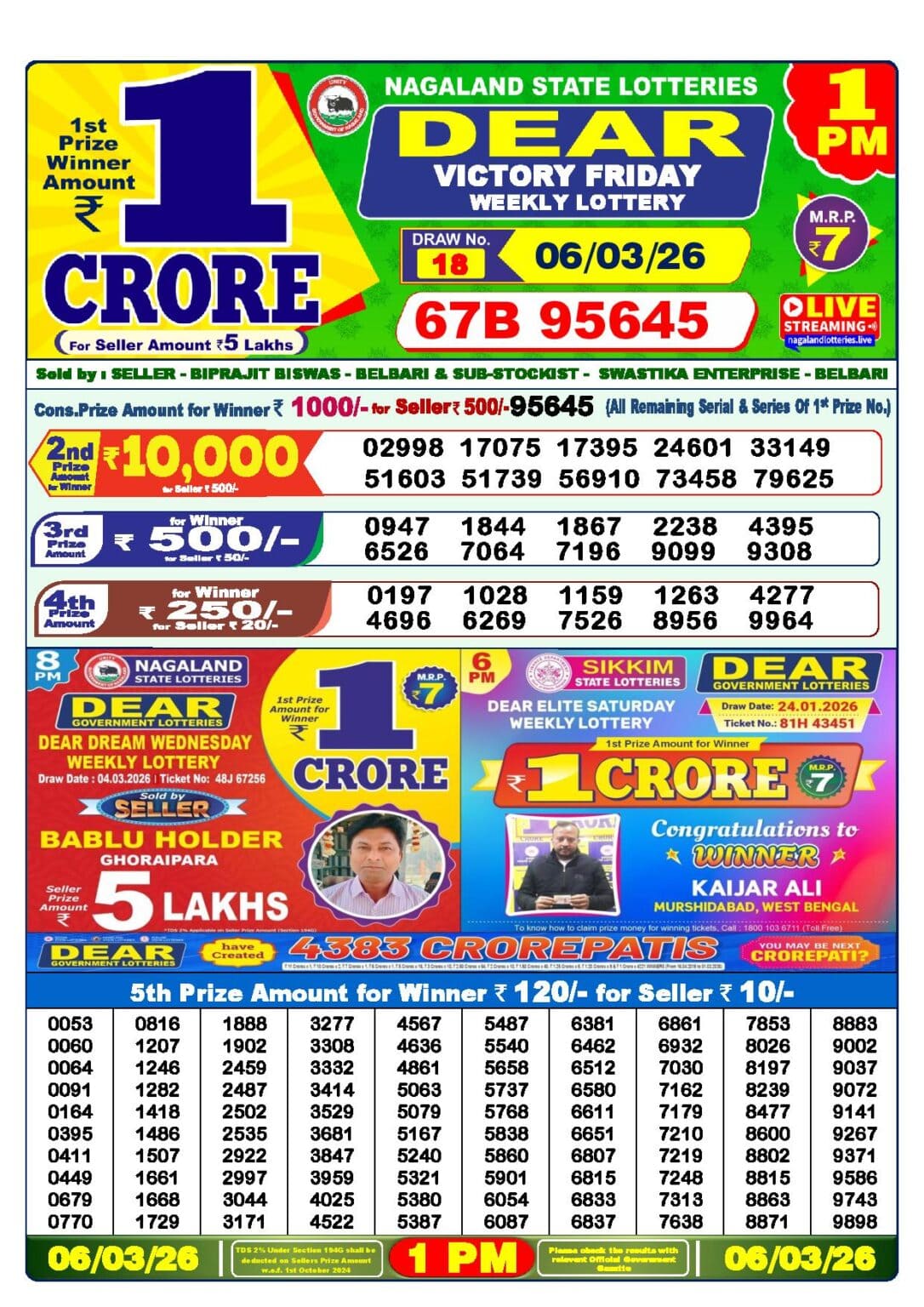 18 Tarik Lottery Result 1 PM 6 PM 8 PM