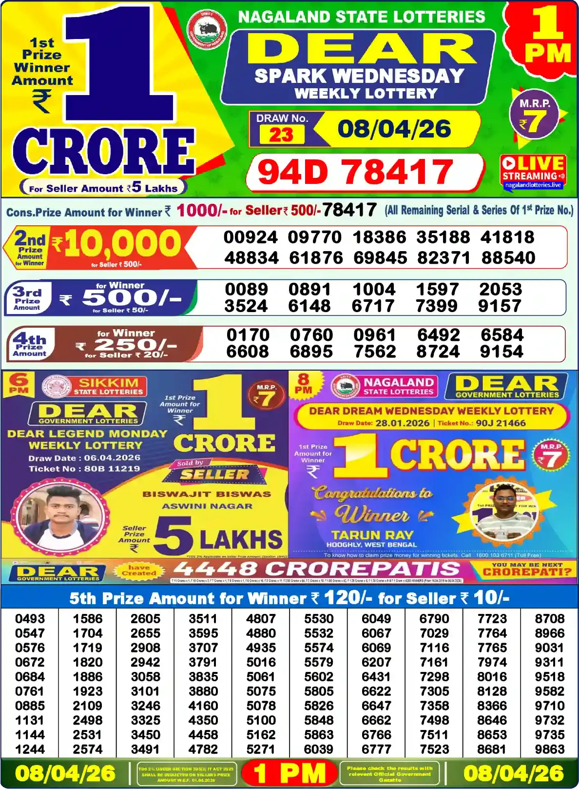23 Tarik Lottery Result 1 PM 6 PM 8 PM