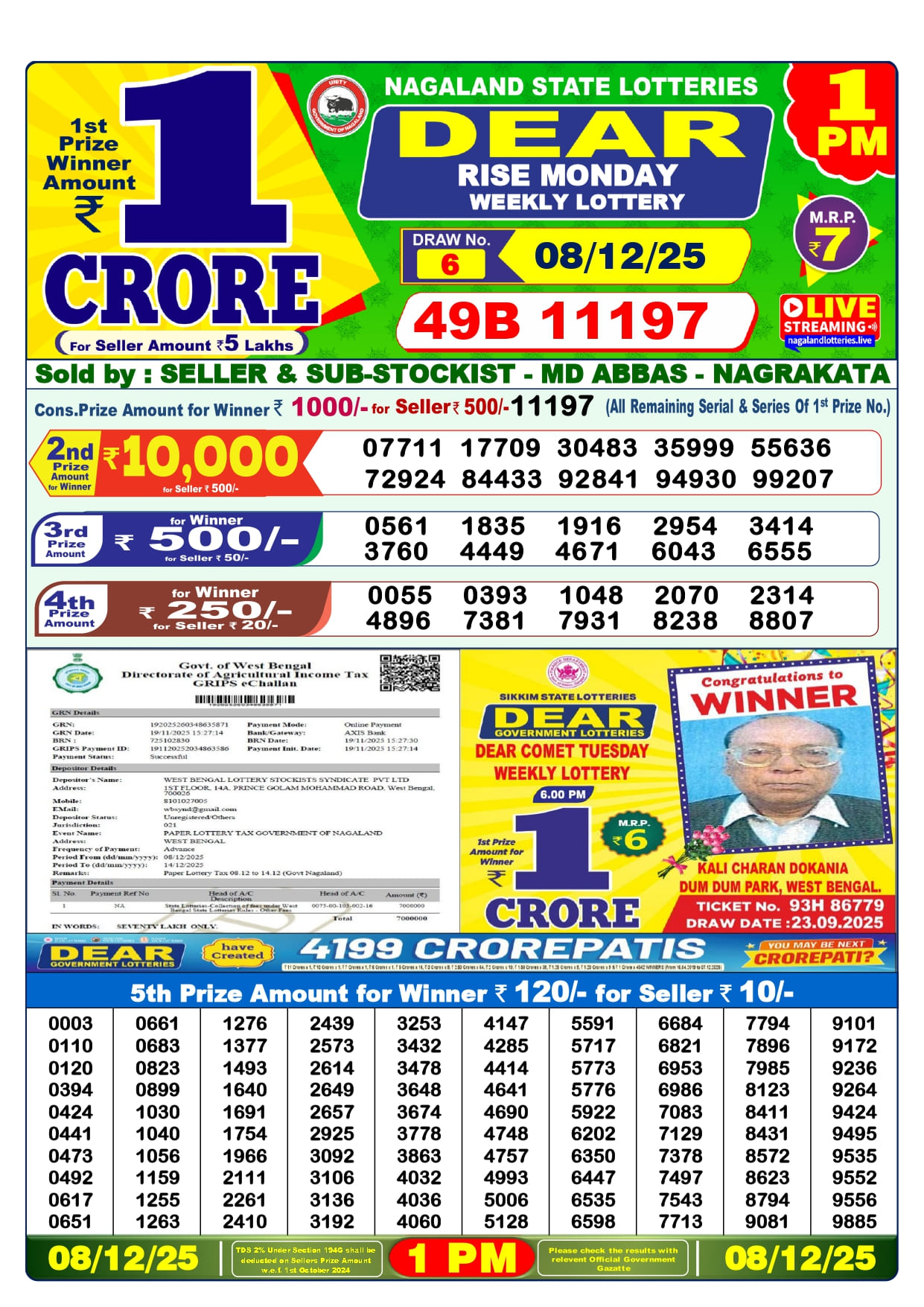 7 Tarik Lottery Result 1 PM 6 PM 8 PM