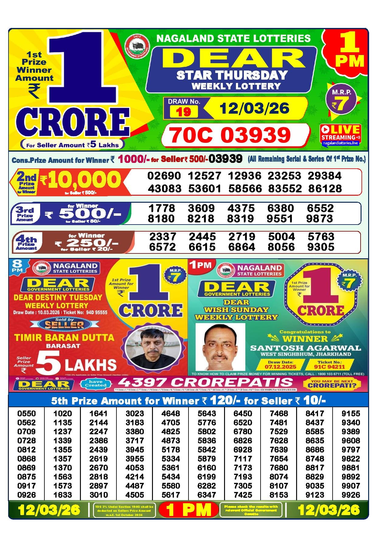Do you want to see the result of Dear Lottery Result Today 1 PM, 6 PM, or 8 PM? Then you have come to the right place. We publish all results of Nagaland State Lottery Result 1 PM, Dear Lottery Result Today, Lottery Sambad Morning Draw List, Nagaland State Lottery Result Morning Draw List, Nagaland State Lottery Result 6 PM, Dear Lottery Result Today 6 PM, Lottery Sambad Evening Draw List, Nagaland State Lottery Result Evening Draw List, Nagaland State Lottery Result 8 PM, Dear Lottery Result Today 8 PM, Lottery Sambad Night Draw List, ডিয়ার লটারি, ডিয়ার লটারি রেজাল্ট, লটারি সংবাদ and Nagaland State Lottery Result Night Draw List on this website every day at the right time. This Dear Lottery Result Today has a 1st prize of 1 crore, 2nd Prize of 9000 Rupees, 3rd Prize of 450 Rupees, 4th Prize of 250 Rupees and 5th Prize of 120 Rupees. Nagaland State Lottery department released Today’s Dear Lottery Result. Today’s result is given below.