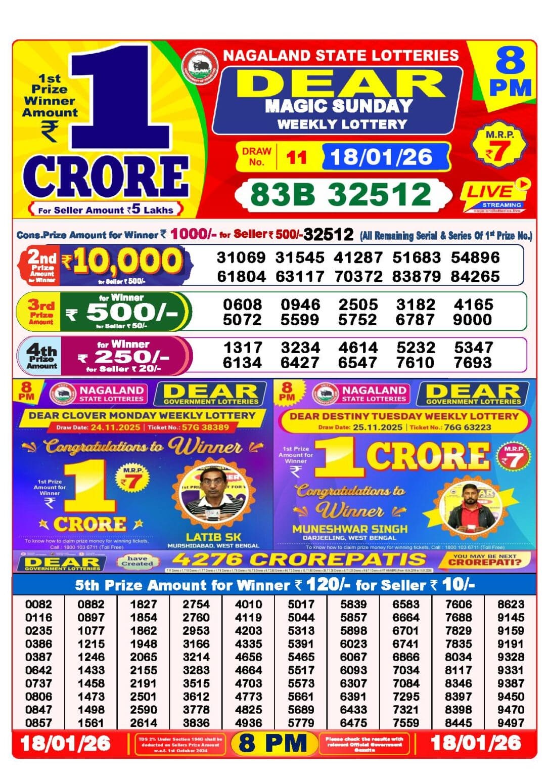 Dear Lottery 18 Tarikh Result 1 PM 6 PM 8 PM 18-01-2026