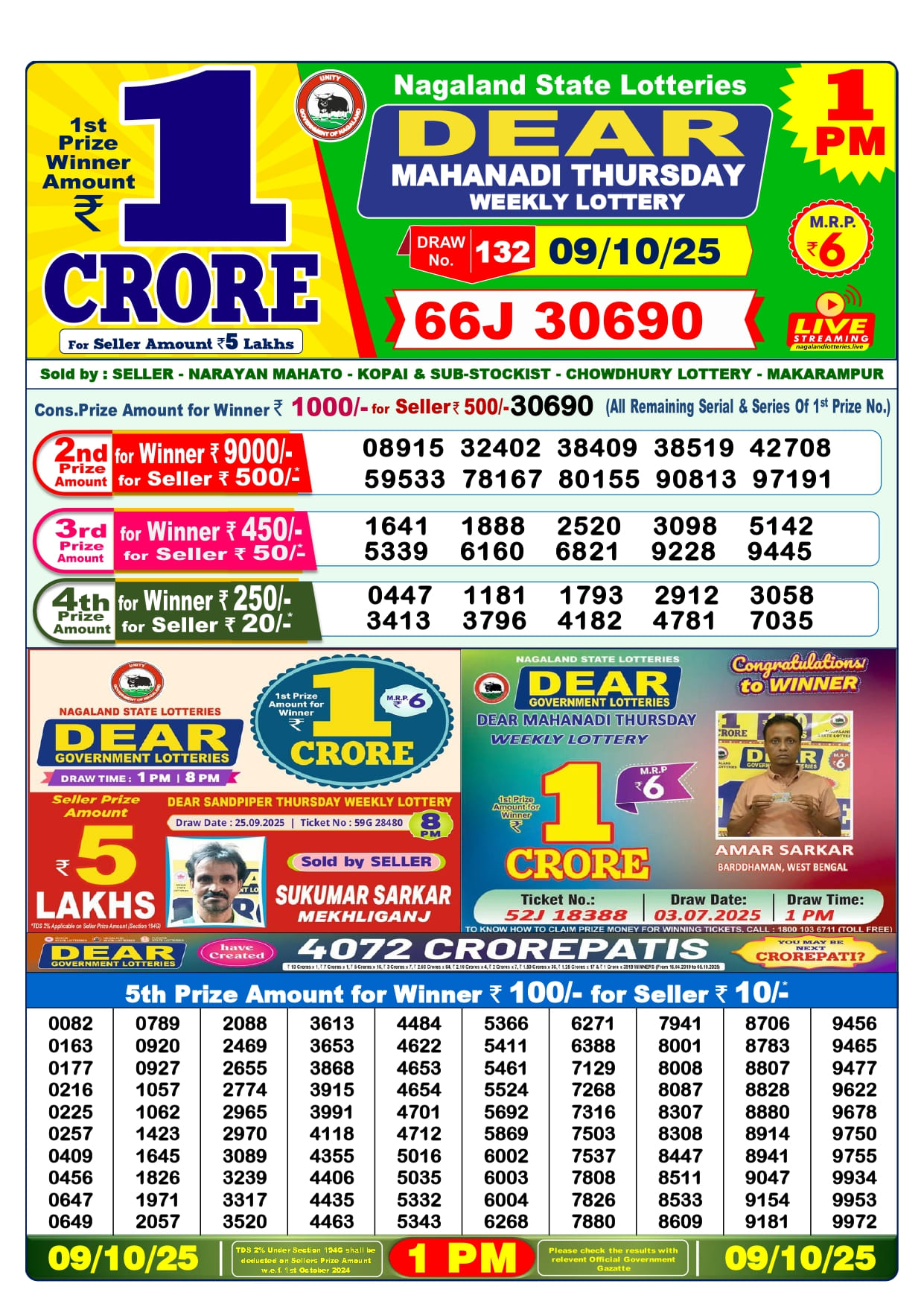 Do you want to see the result of Dear Lottery Result Today 1PM? Then you have come to the right place. We publish all results of Nagaland State Lottery Result 1PM, Dear Lottery Result Today, Lottery Sambad Morning Draw List, Nagaland State Lottery Result Morning Draw List, Nagaland State Lottery Result 6PM, Dear Lottery Result Today 6PM, Lottery Sambad Evening Draw List, Nagaland State Lottery Result Evening Draw List, Nagaland State Lottery Result 8PM, Dear Lottery Result Today 8PM, Lottery Sambad Night Draw List, ডিয়ার লটারি, ডিয়ার লটারি রেজাল্ট, লটারি সংবাদ and Nagaland State Lottery Result Night Draw List on this website every day at the right time. This Dear Lottery Result Today 1PM has a 1st prize of 1 crore, 2nd Prize of 9000 Rupees, 3rd Prize of 450 Rupees, 4th Prize of 250 Rupees and 5th Prize of 120 Rupees. Nagaland State Lottery department released Today’s Dear Lottery Result. Today’s result is given below.