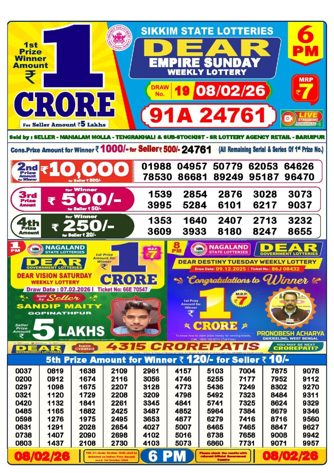 Dear Lottery Result Today 6PM Winners List (OUT) LIVE 08-02-2026 Download