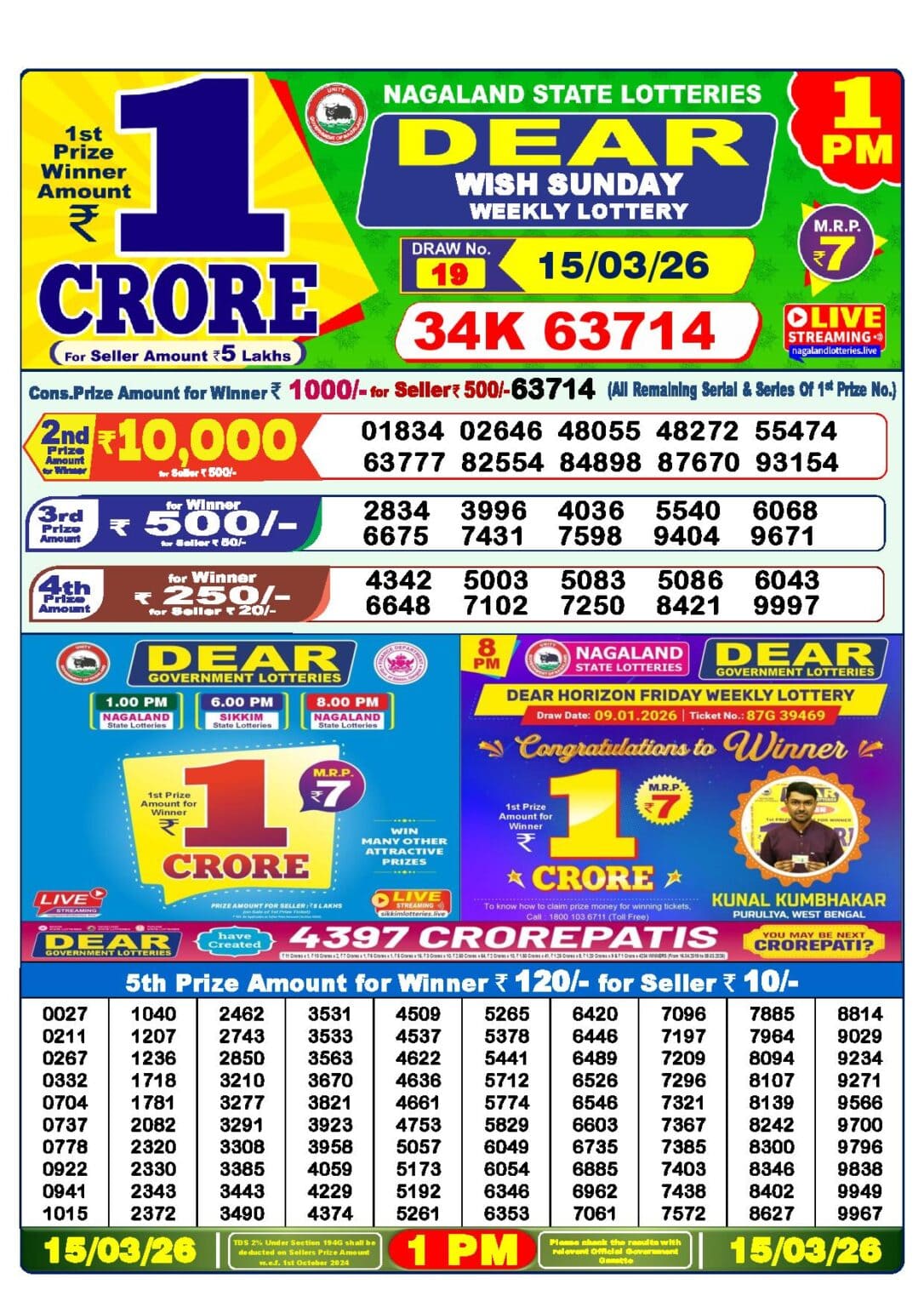 Lottery Sambad 15 Tarik 1 PM