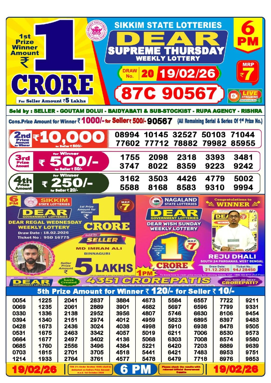 Lottery Sambad 19 Tarik 6 pm. The Nagaland State Lottery Department has released today’s results. Check your today’s fortune result. This Lottery Sambad 19 Tarik 6 pm has a 1st prize of 1 crore, 2nd Prize of 9000 Rupees, 3rd Prize of 450 Rupees, 4th Prize of 250 Rupees and 5th Prize of 120 Rupees. Today Lottery Sambad 19 Tarik 6 PM 1st Prize is – 99G 25060, 2nd Prize– 14413 15127 19965 23237 48435 51928 54226 63481 87351 92092, 3rd Prize– 1197 2200 2620 3533 3629 6003 7332 7918 8054 8395, 4th Prize– 1466 1632 2181 2818 2943 4371 4470 5448 5896 9699 and more results are given below.