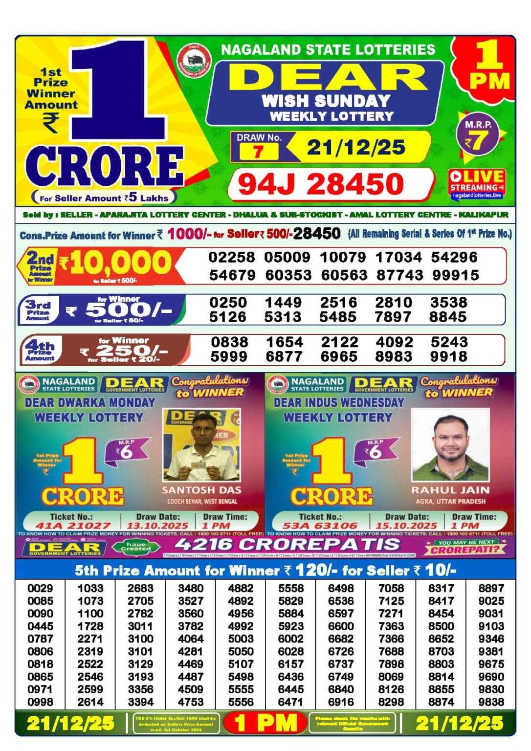 Lottery Sambad 21 Tarikh Morning আরো অন্যান্য নামগুলি হল