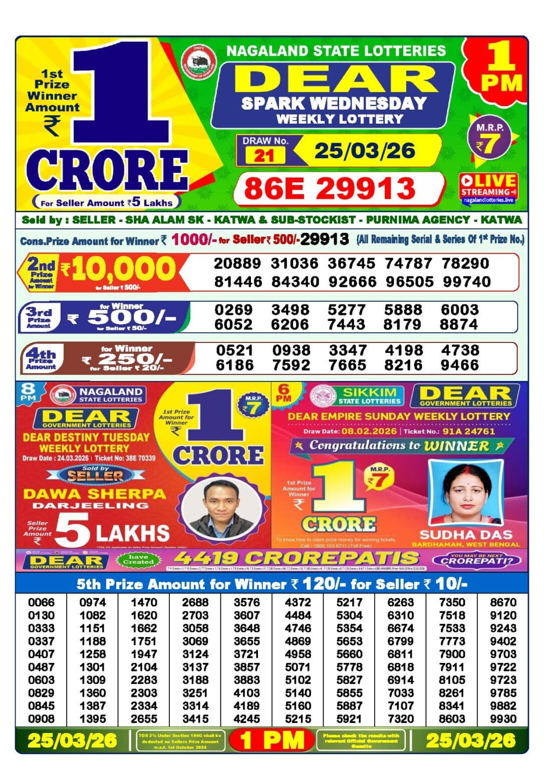 Lottery Sambad 25 Tarik Morning Result 1 PM