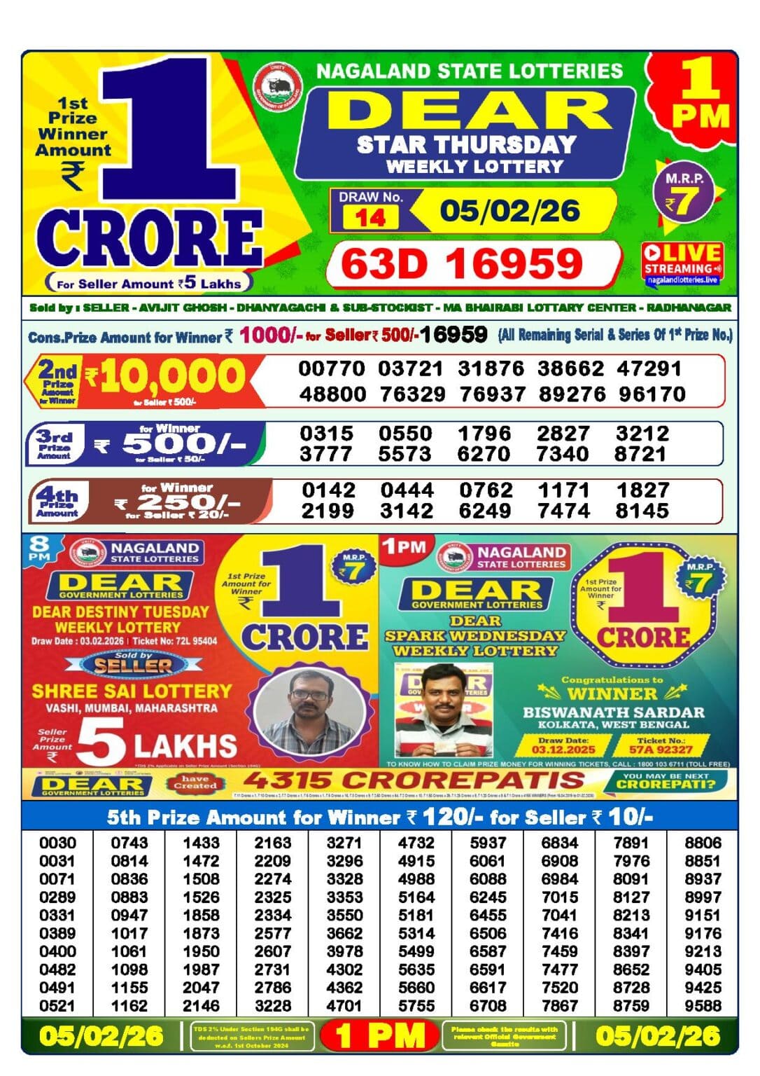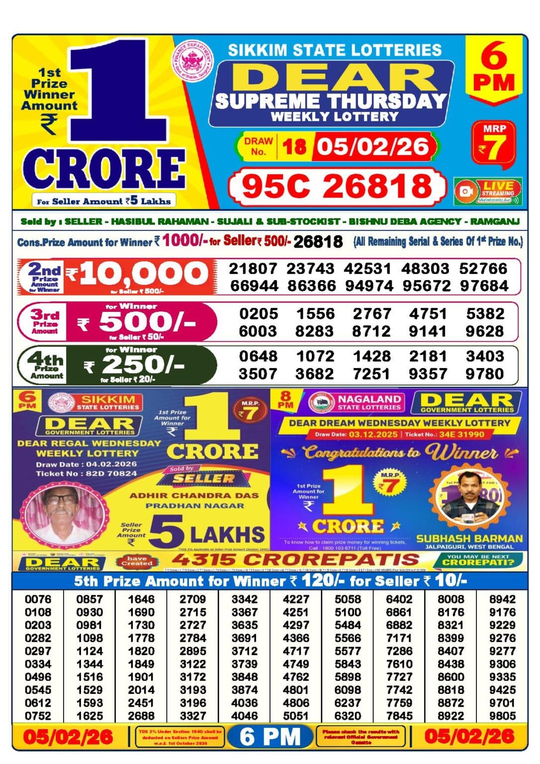 Lottery Sambad 5 Tarikh Result 1 PM 6 PM 8 PM 05-02-2026