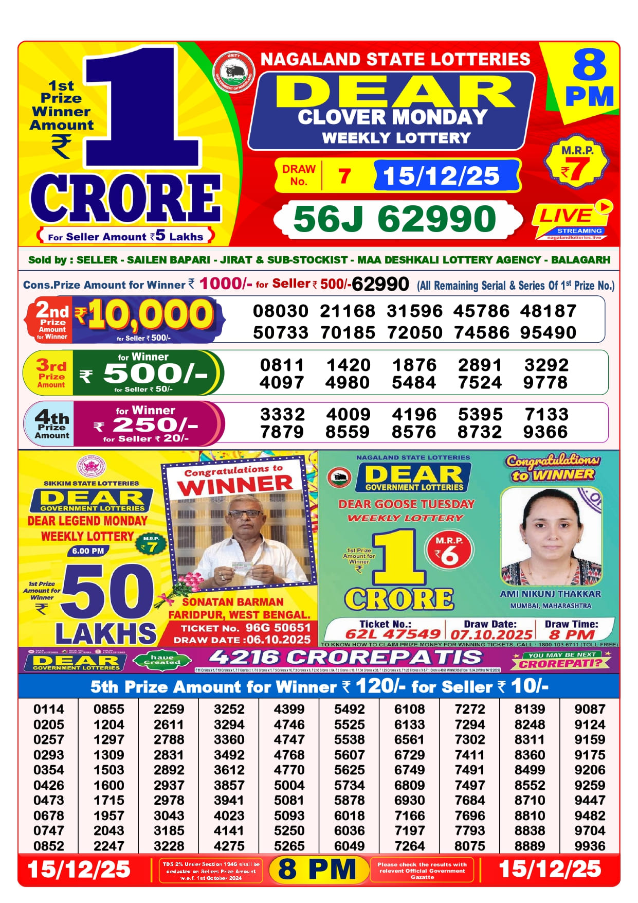 Lottery Sambad Live 8PM আরো অন্যান্য নামগুলি হল