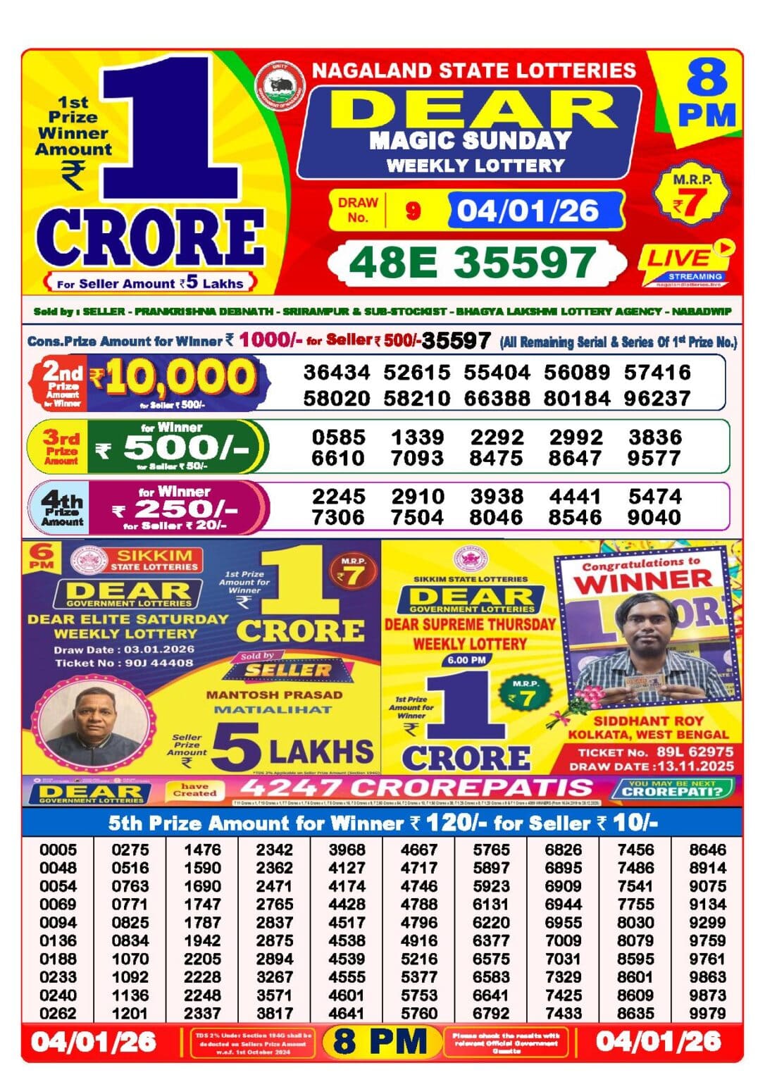 Nagaland Lottery 4 Tarik 6 PM