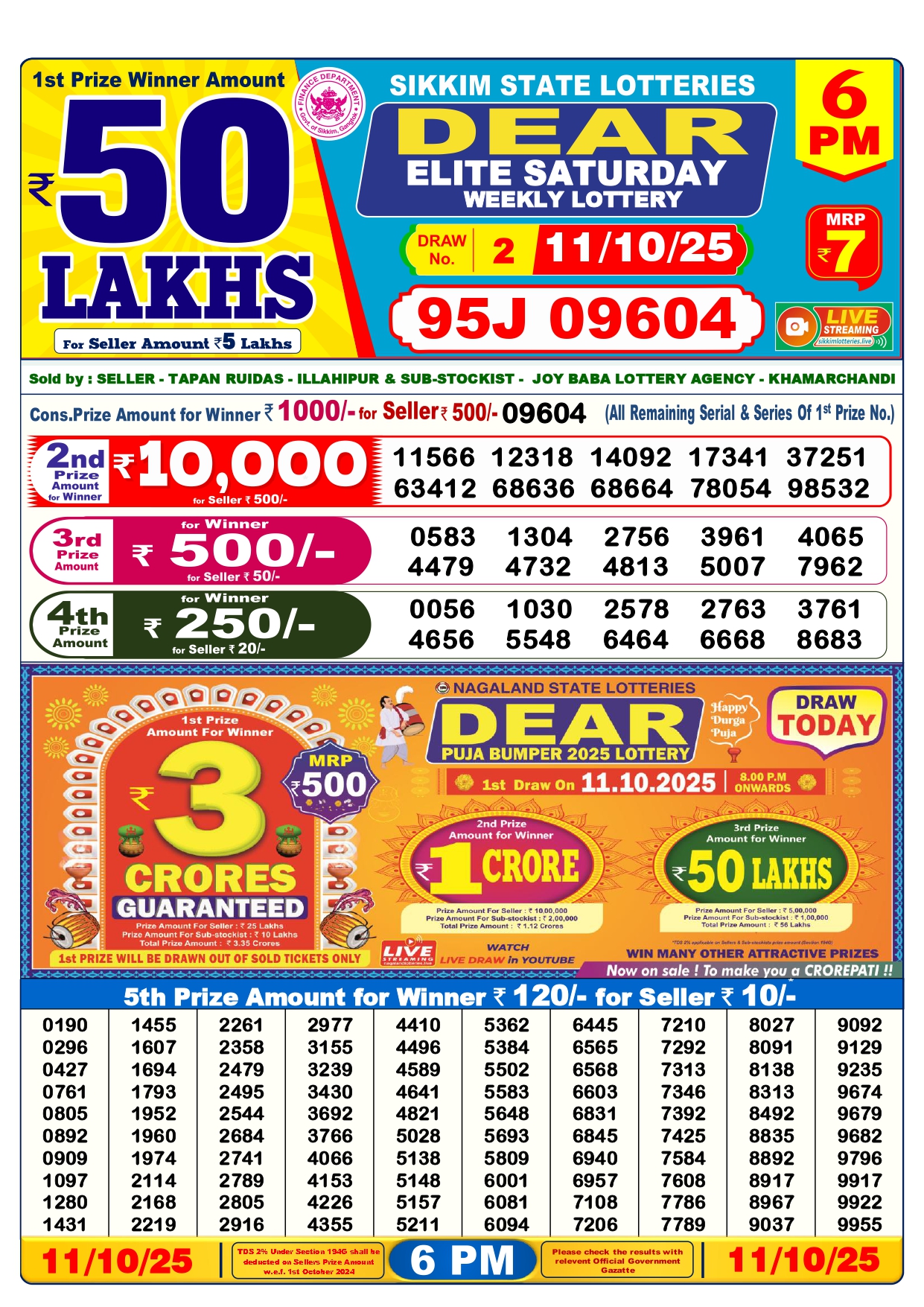 Nagaland State Lottery 11 Tarik 6 PM Result