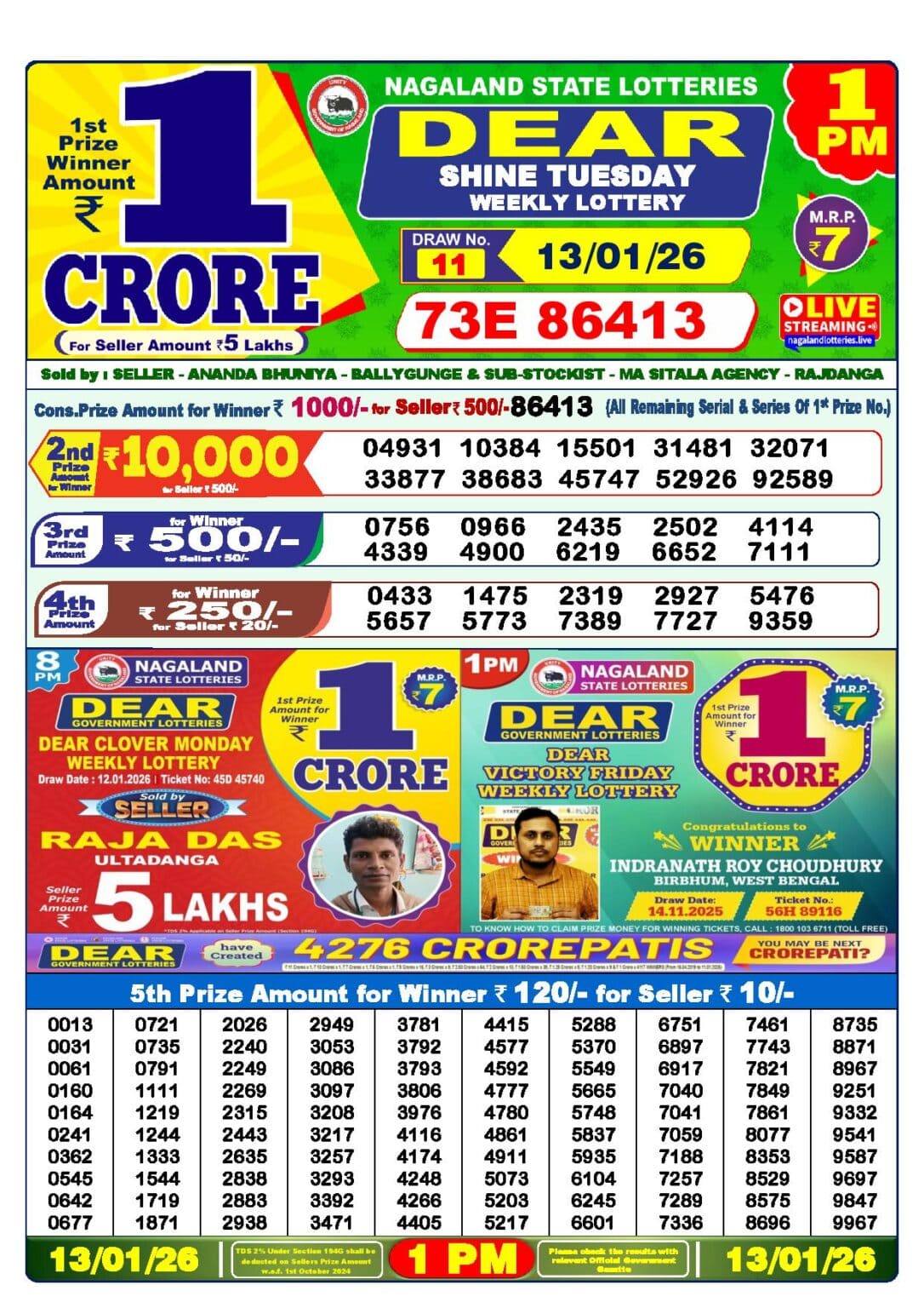 | Lottery Name | Nagaland State Lottery 13 Tarik |