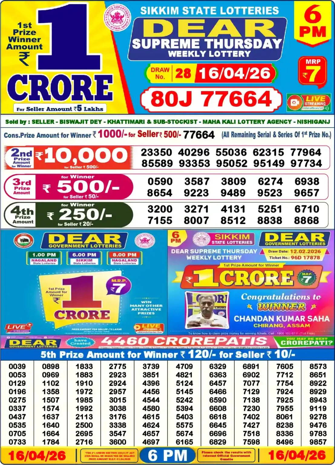 | Lottery Name | Nagaland State Lottery 16 Tarik |