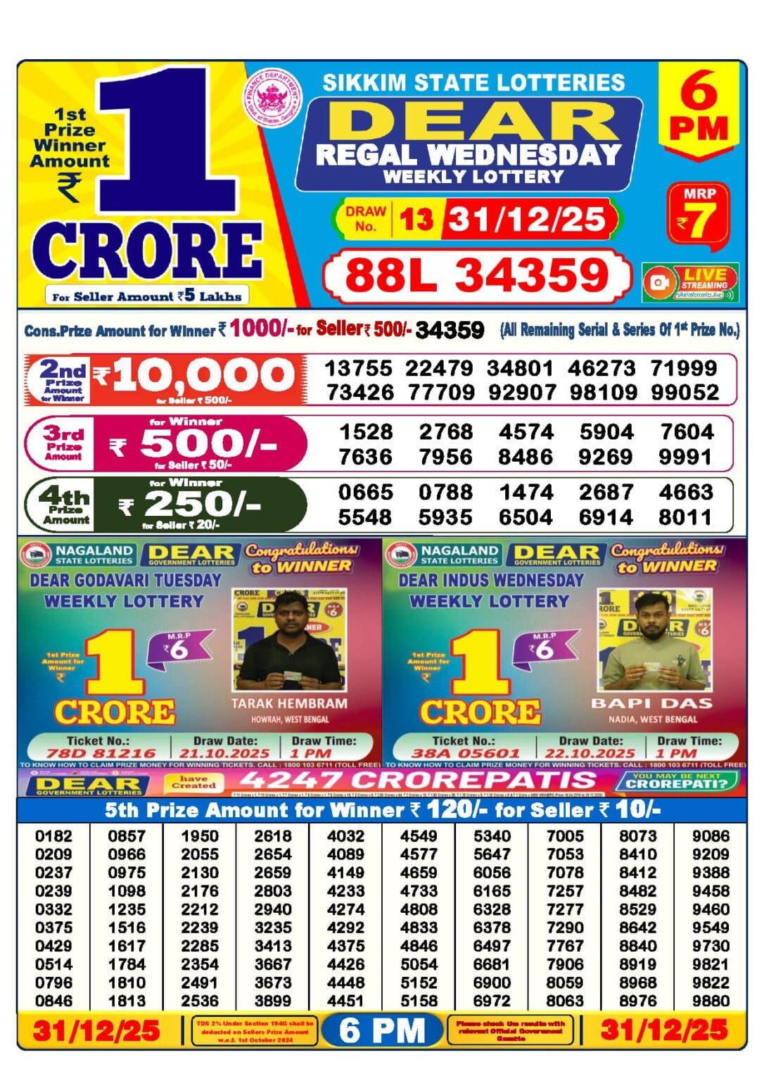 | Lottery Name | Nagaland State Lottery 31 Tarik |