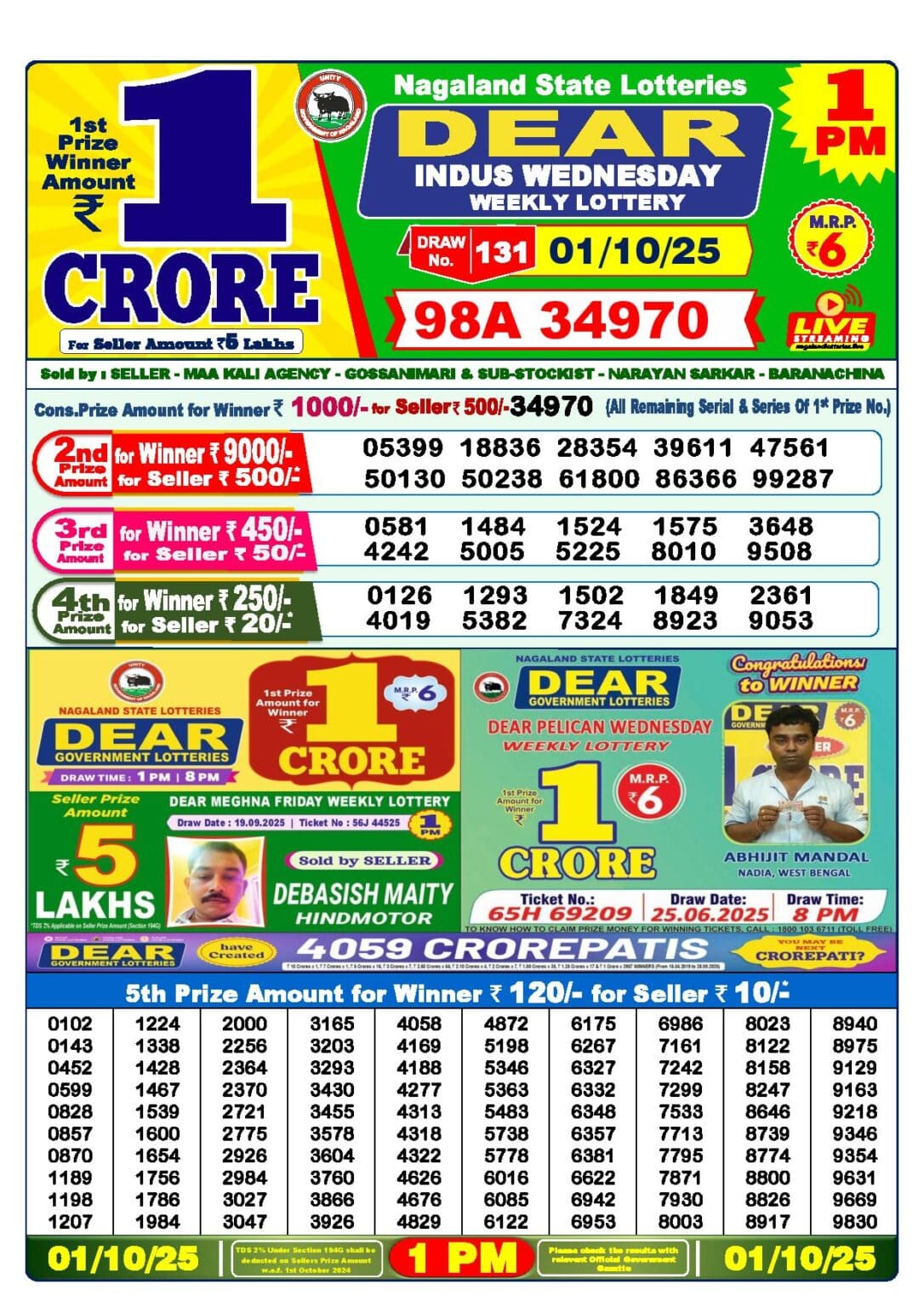 Nagaland State Lottery 1 Tarik Result